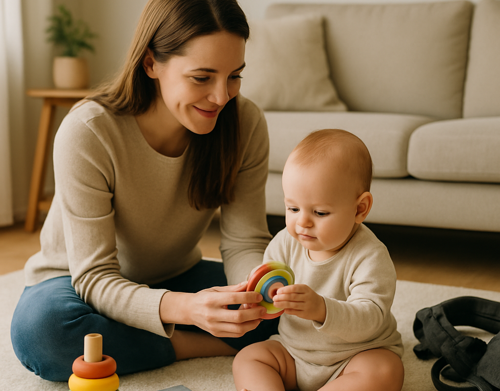 - 6–12 Monate: Stapelbecher, Beißringe, einfache Ursache-Wirkungs-Spiele (z. B. Klopfen und hören).